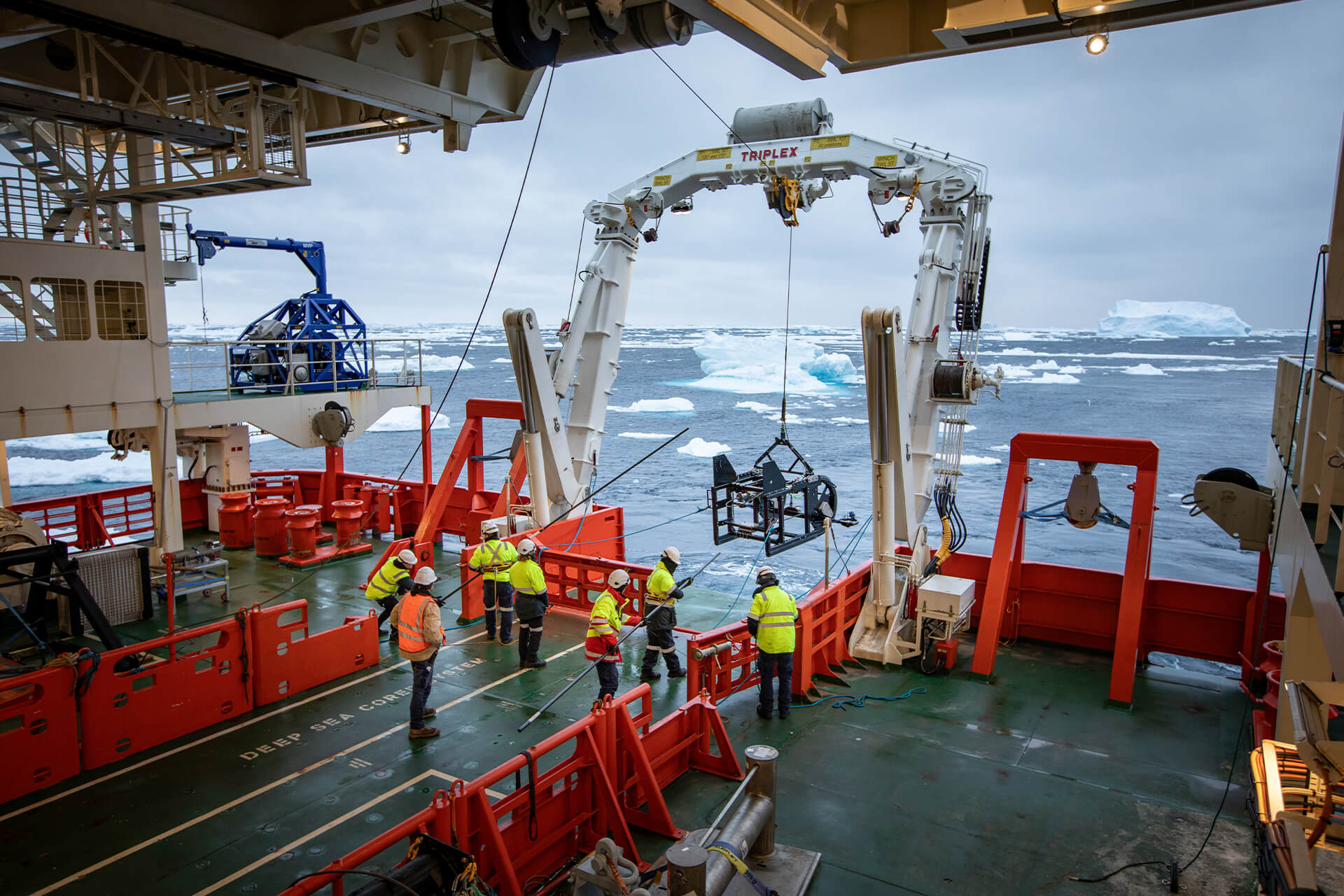 Research vessels do more than observe the ocean — they can also recover material for closer study onboard.