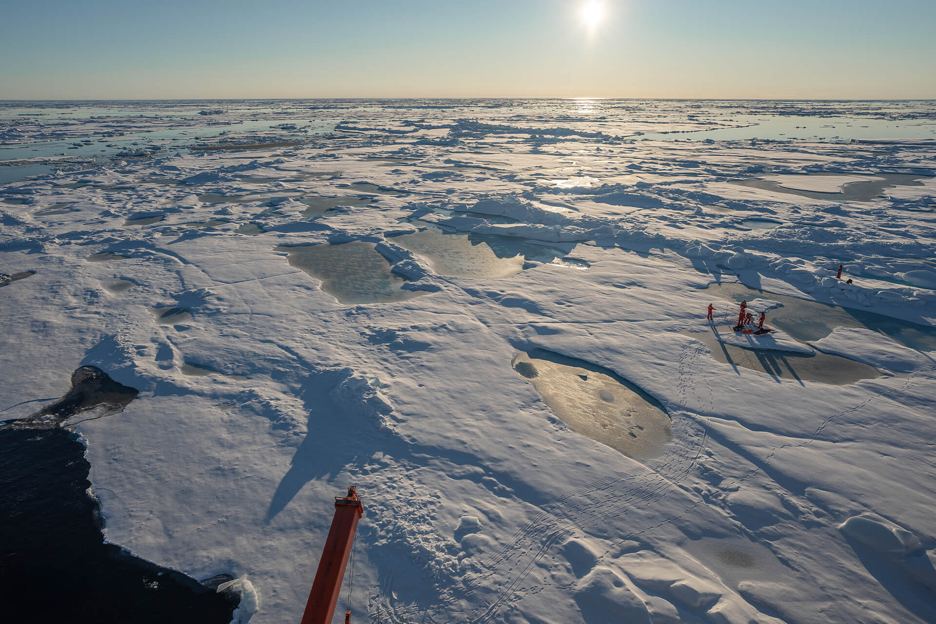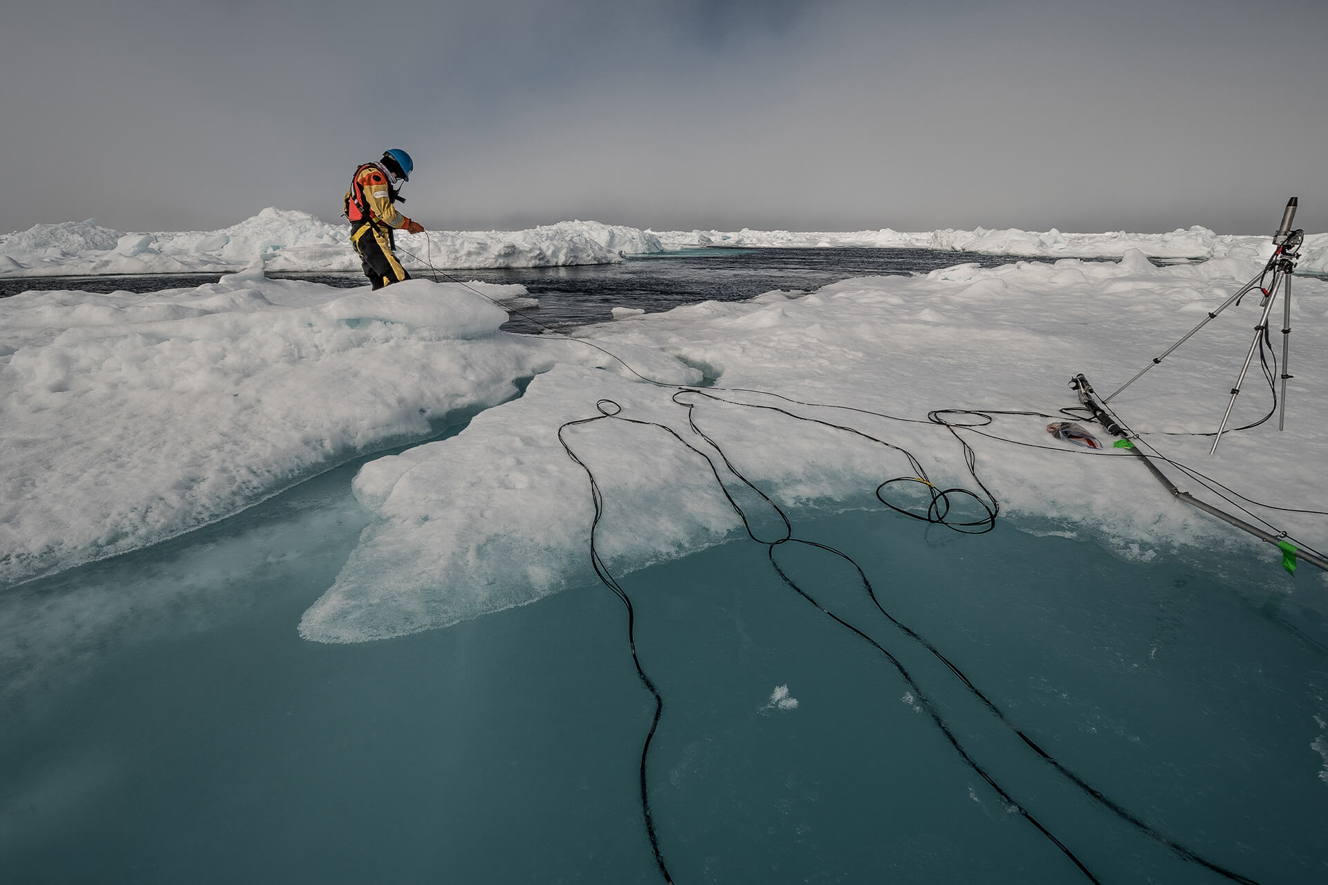 Sea ice can also act as a research platform. Working from its surface, scientists collect samples, drill through the ice, and use hyperspectral imaging to study both the structure of the ice and the biological communities growing within it.