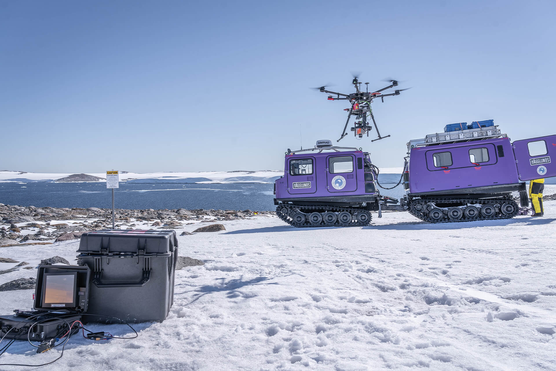 These systems build the long-term records that make Antarctic change visible over time. In more remote locations, installing or servicing these instruments is a major operation, requiring long-distance traverses and large field efforts to move heavy equipment across the ice.