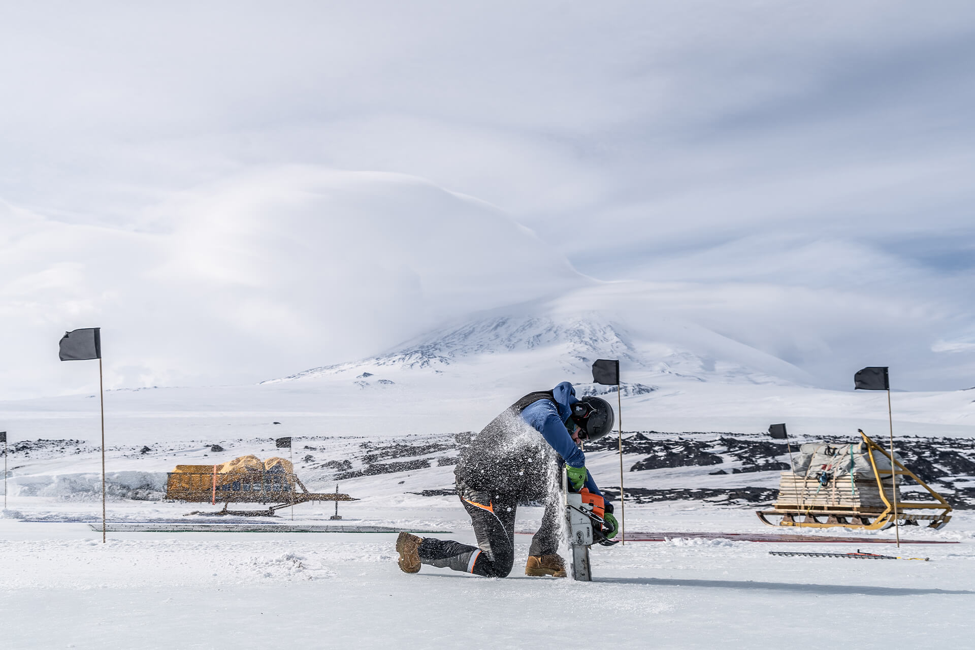 Field teams travel across glaciers, ice shelves and coastal environments to install instruments and collect samples.