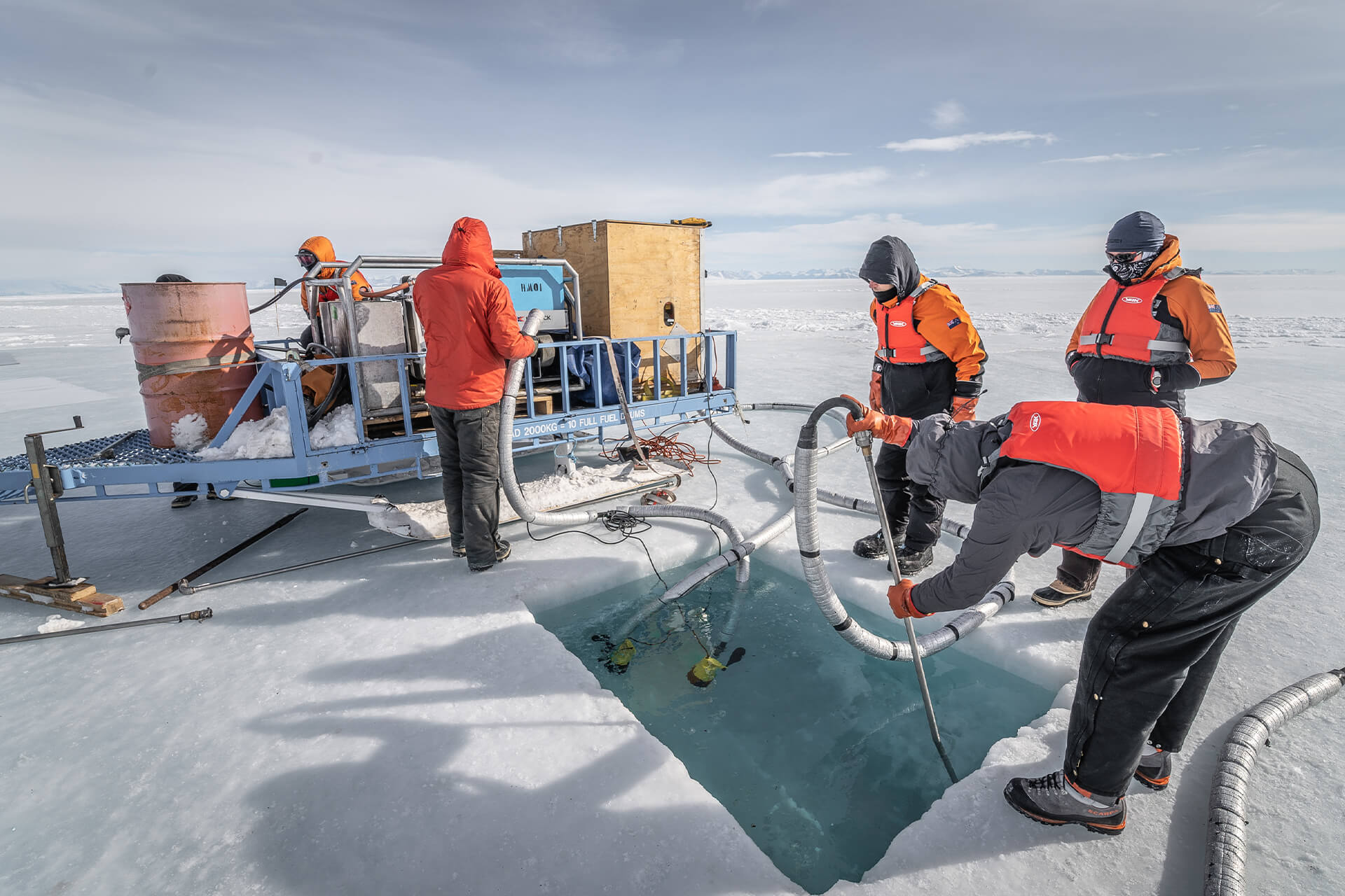 In some coastal areas, researchers can walk onto stable sea ice and drill or cut holes through to the water below. Beneath thicker floating ice shelves, access may require hot-water drilling systems, which melt narrow boreholes through hundreds of metres of ice. Once an opening is made, scientists can lower cameras, instruments and sampling equipment into the water beneath.